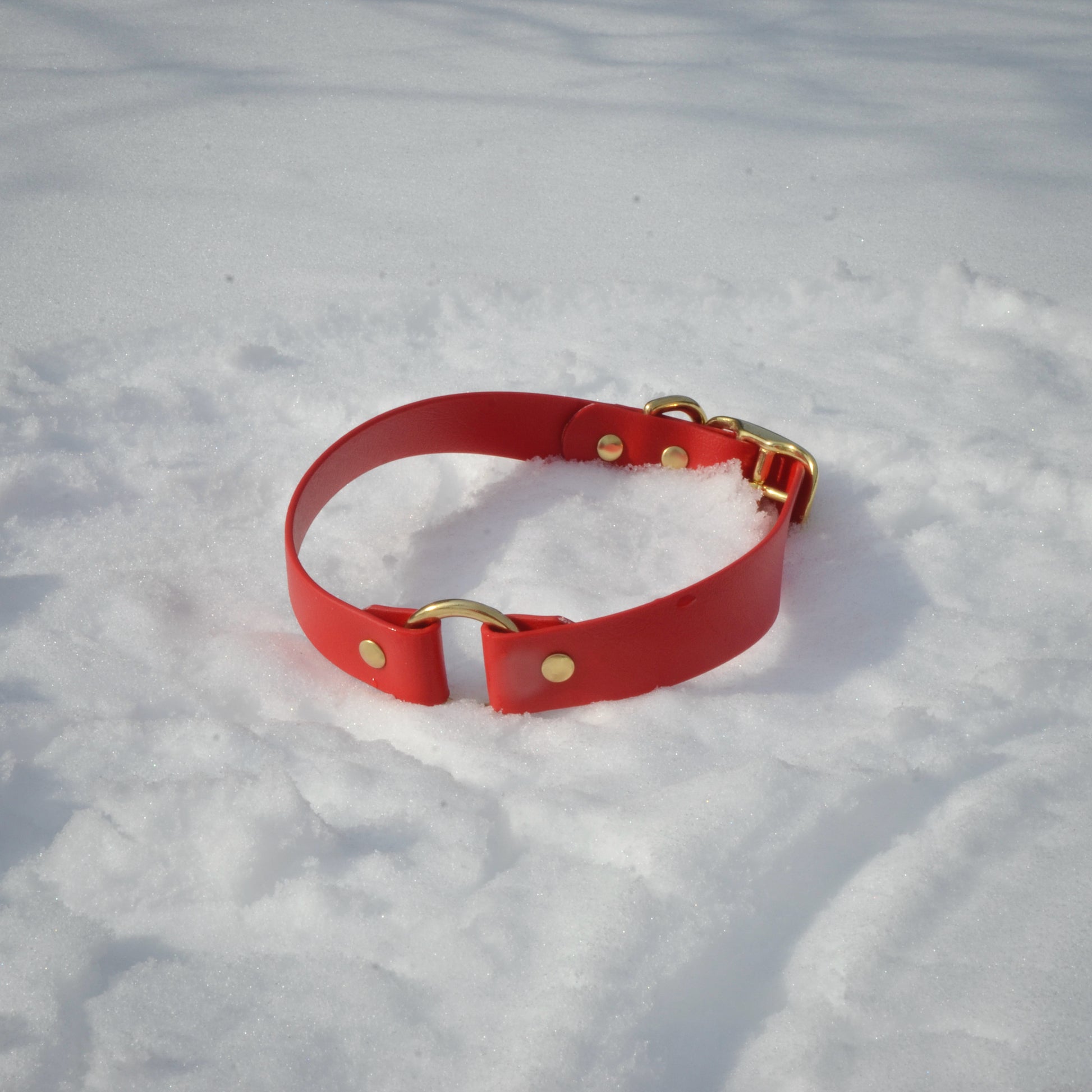 E: Our collars are made in biothane, this material is waterproof, will not absorb odors and will not stain. Biothane is easy to clean, a bit of water and soap and your collar will look brand new. Our biothane products are handmade in Quebec.
