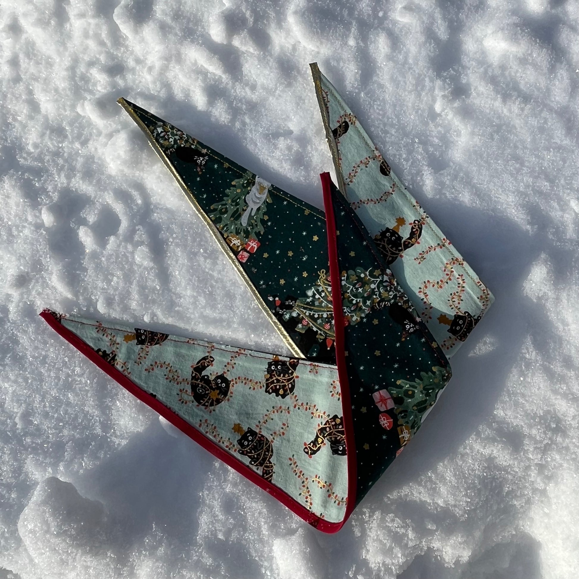 E: Available in 12 sizes. Our bandanas are handmade in Quebec. Machine washable.