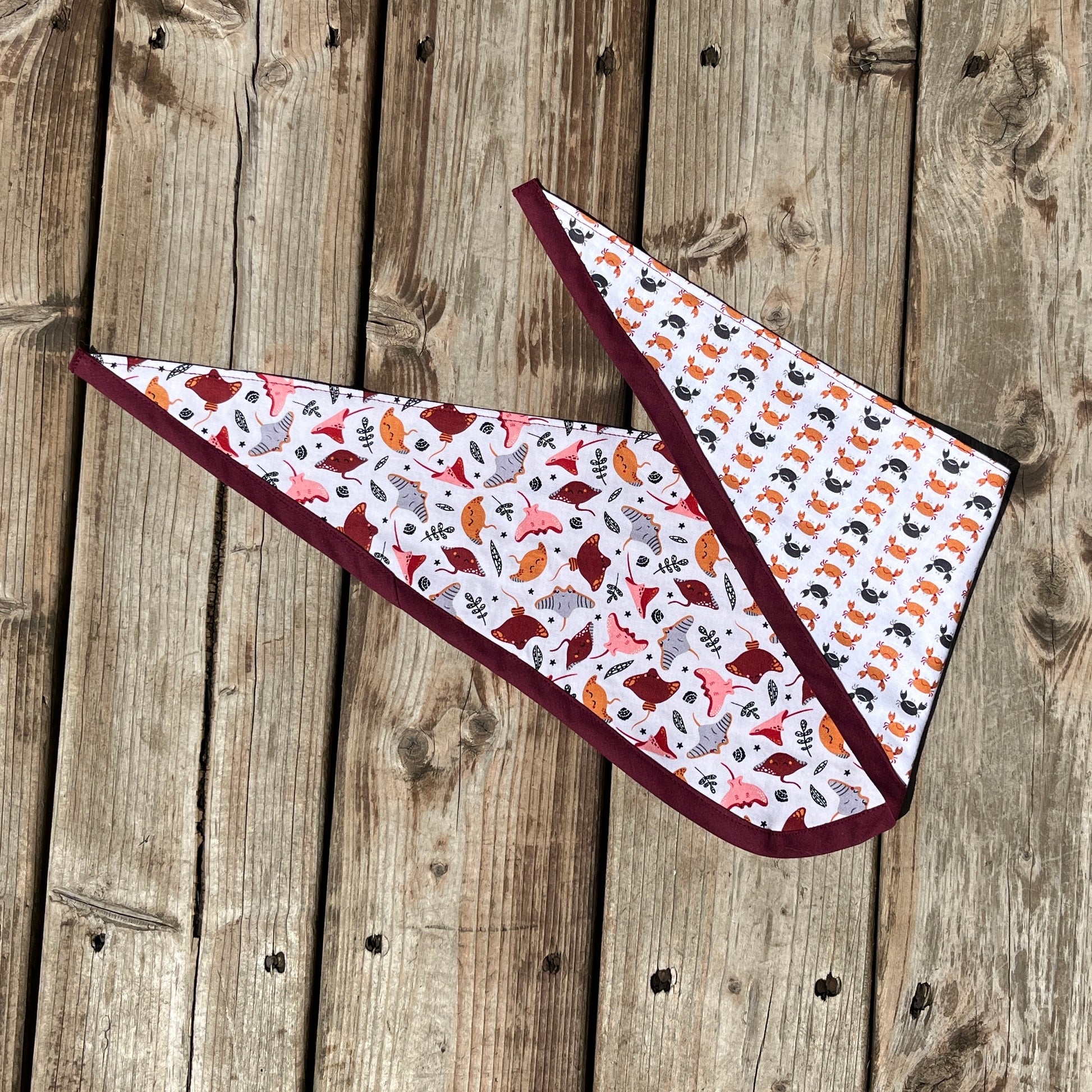 E: Available in 12 sizes. Our bandanas are handmade in Quebec. Machine washable.