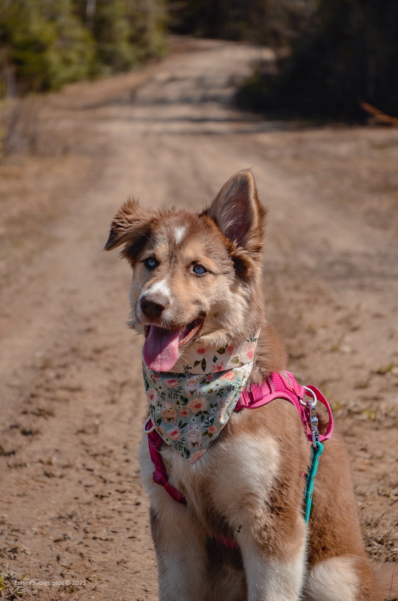 E: Available in 12 sizes. Our bandanas are handmade in Quebec. Machine washable.