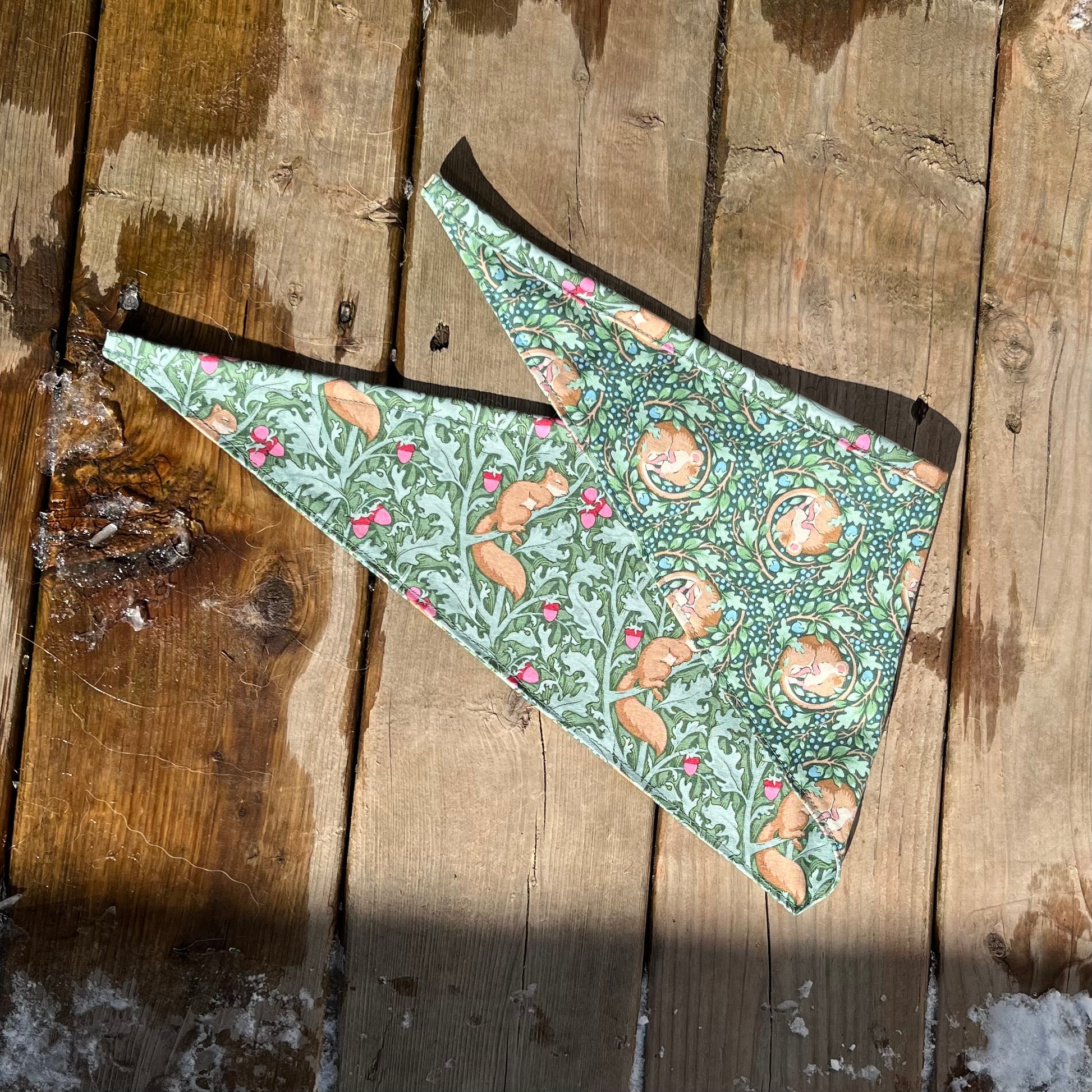 E: Available in 12 sizes. Our bandanas are handmade in Quebec. Machine washable.