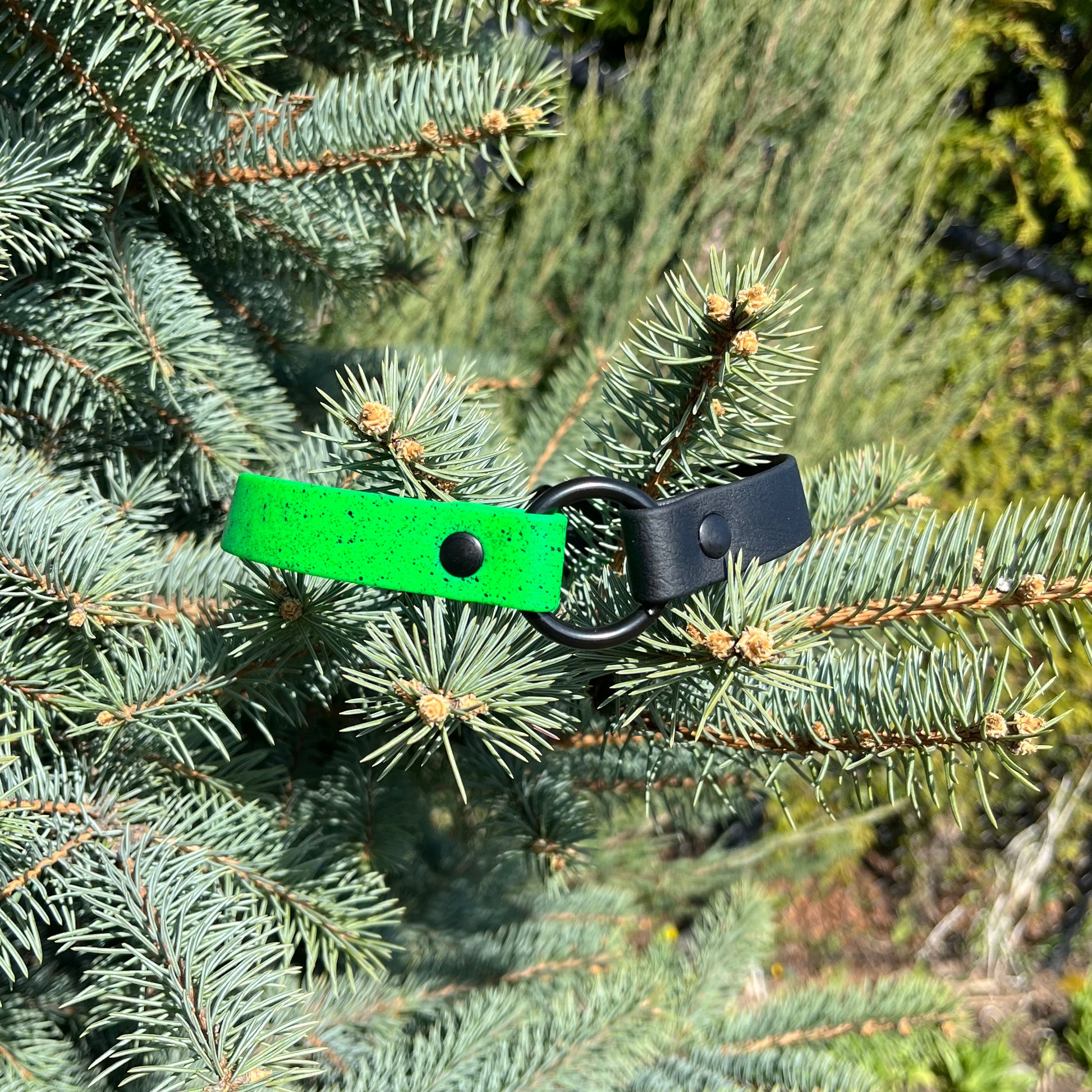 The paint used for our speckled collars is waterproof and will not crack or peel. It is normal for the paint to come off where the collar buckle is.