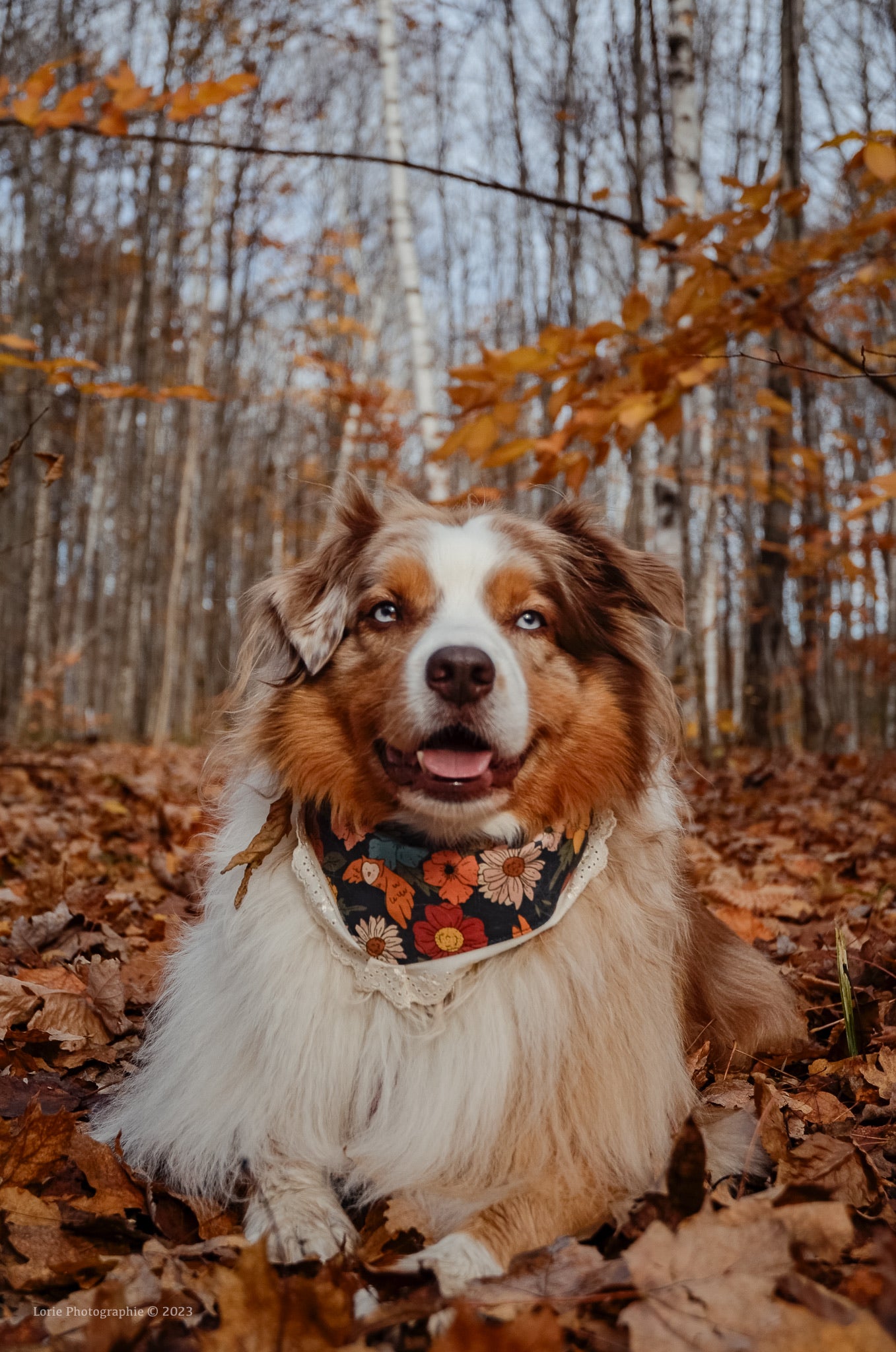 E: Available in 12 sizes. Our bandanas are handmade in Quebec. Machine washable.